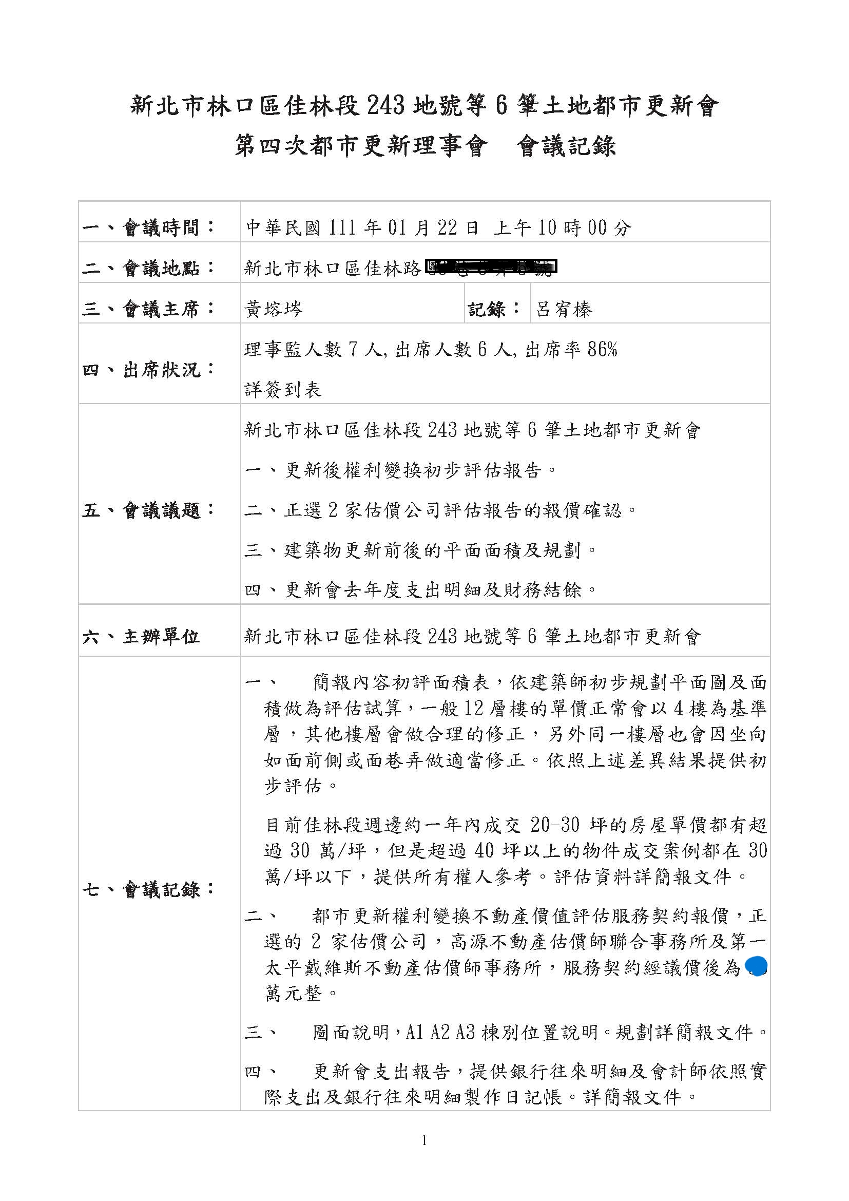 新北市林口區佳林段243地號等6筆土地第三次理監事會議紀綠